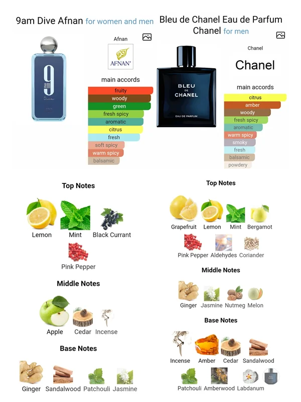 ✔️Afnan 9AM Dive اغلب بهعنوان نسخهای الهامگرفته از Bleu de Chanel Eau de Parfum شناخته میشود.