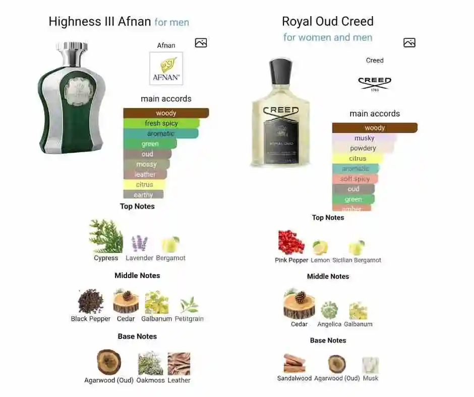 Highness III آشکارا از Royal Oud by Creed الهام گرفته، ولی با شخصیتی خشکتر و سبزتر.